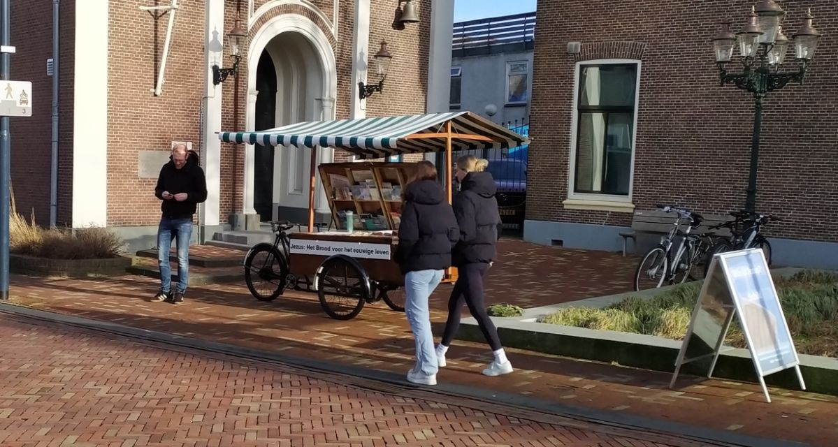 Maandelijks staan gemeenteleden met de bakfiets bij de Lutherkerk. We spreken dan mensen aan en delen folders uit. We hopen op een gesprekje over het leven, geloof of de toekomst. We geloven dat het Evangelie voor mensen werkelijk redding en troost brengt door Jezus Christus. Die boodschap heeft ook vandaag nog betekenis en is ook vandaag nog nodig. Aan ieders leven komt een keer een einde. En dan zal God ons oordelen. Wie volmaakt zonder zonden is, die mag in de hemel komen. Wie niet aan de eis voldoet, mag niet in de hemel komen. Misschien denk je wel: ‘Wie kan dan nog zalig worden.’ Het antwoord daarop is: Niemand kan meer uit zichzelf zalig worden, tenzij je mag geloven in Jezus en mag weten dat Hij ook jouw Verlosser is.
